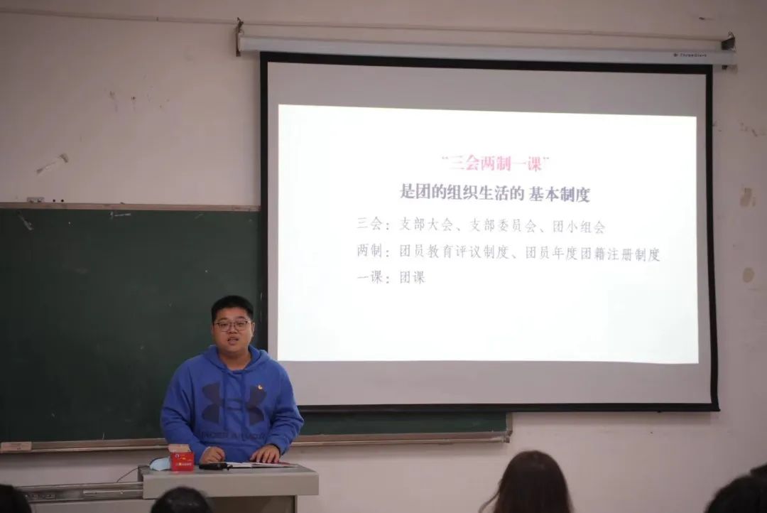 随后华震东老师又向同学们介绍到“三会两制一课”的具体含义:它是团组织生活的基本制度,详细阐述了支部委员会会议和团小组会议的主要任务、团员教育评议的主要内容和流程以及团课的主要内容。