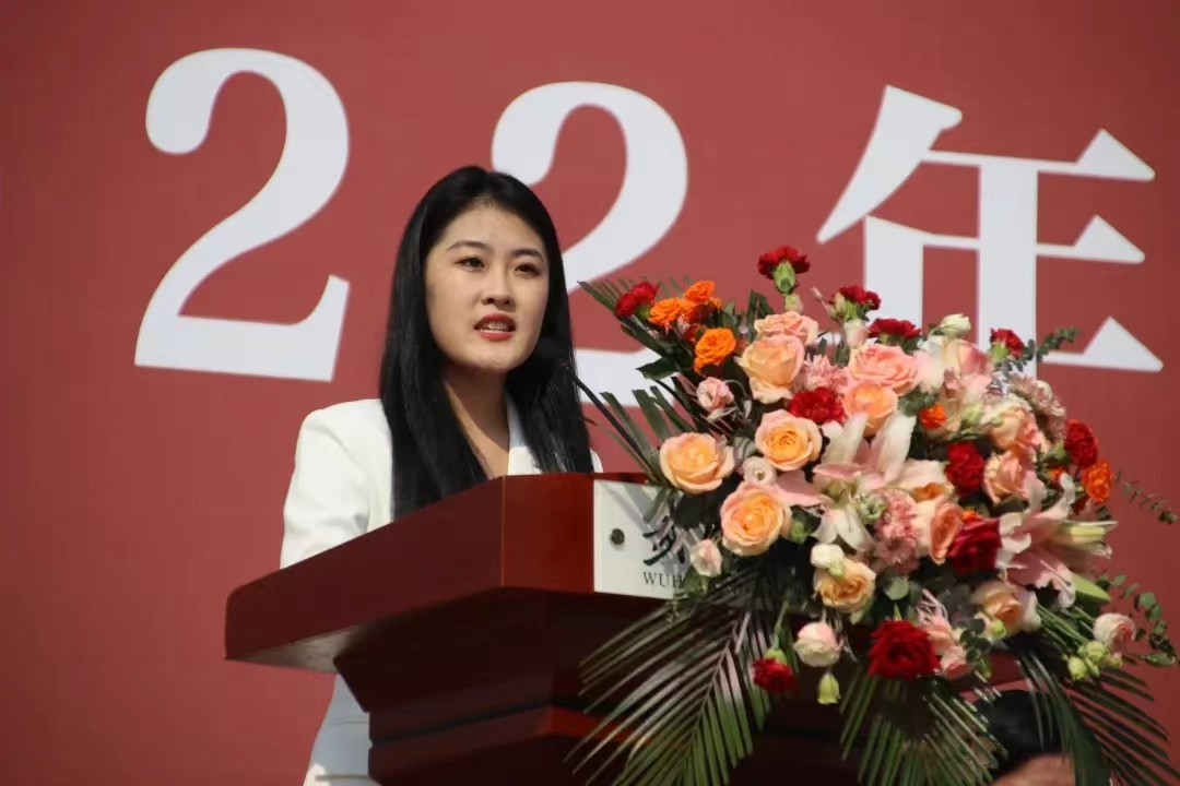 王校长致辞过后,设计学院的教师代表陈静老师上台发言,她表示希望大家珍惜在校的美好时光,在各自选择的道路上遇见更好的自己。