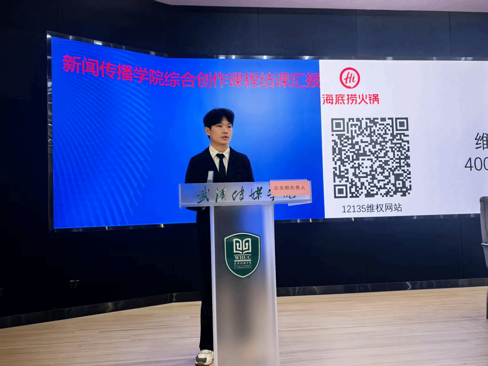 1点30整,随着中控室韩飞扬同学的一声“李老师和各位同学,中控室准备就绪”,李兰老师宣布模拟新闻发布会现场结课汇报正式开始。