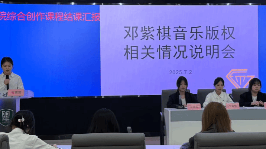 与以上四个小组呈现企业新品和招商发布会的多种形式不同,第七组另辟蹊径,选择了一起备受瞩目的娱乐圈法律纠纷事件作为新闻发布主题——“邓紫棋音乐版权相关情况说明会”。