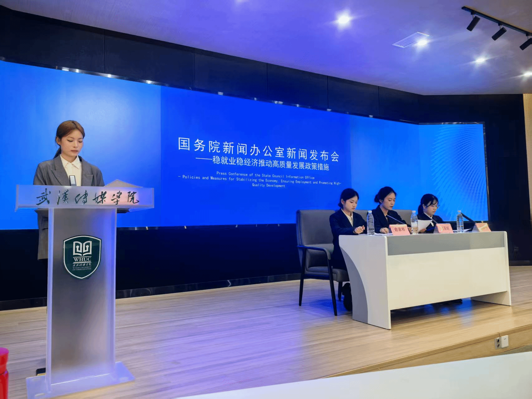 从场景打造、新闻通稿撰写,到现场流程把控、媒体提问应对,再到音视频设备调试、场务统筹等细节,均按照真实场景标准执行,让学生在实践中深化对新闻传播和公关活动实务的理解与运用。