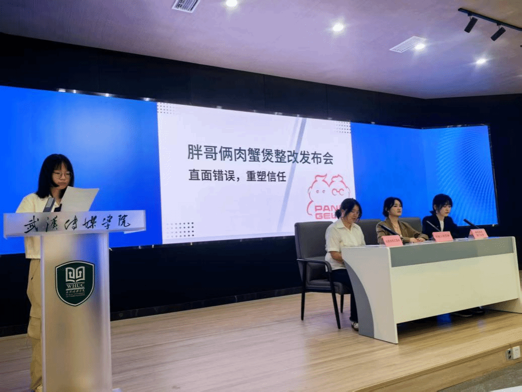 第五组、第十一组和第十二组分别围绕“胖哥俩蟹肉煲”食品安全事件、小米SU7爆燃事件和海底捞“小便事件”等企业热点危机事件进行了危机公关的新闻发布会演练。