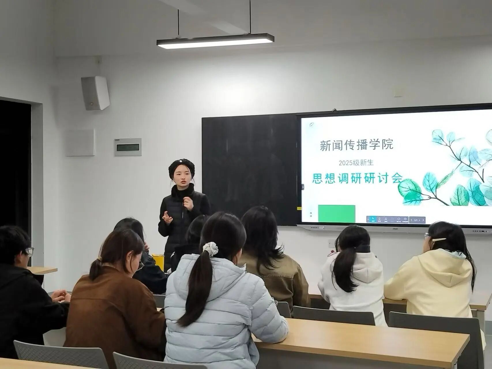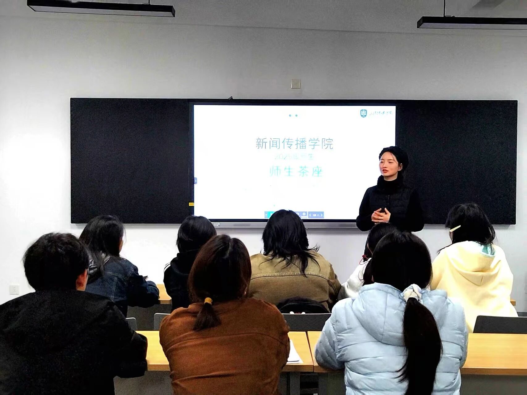 针对同学们提出的竞赛相关疑问,张少君老师逐一细致回应,对于大家的参赛意愿,他明确表示,教师团队将积极响应,以“以赛促学、以赛促练”为导向,全力带领同学们参与各类专业竞赛,助力大家在实战中夯实专业基础、提升专业水平,同时涵养新闻人的责任担当与创新思维,为投身新时代新闻传播事业筑牢思想与能力双重根基。