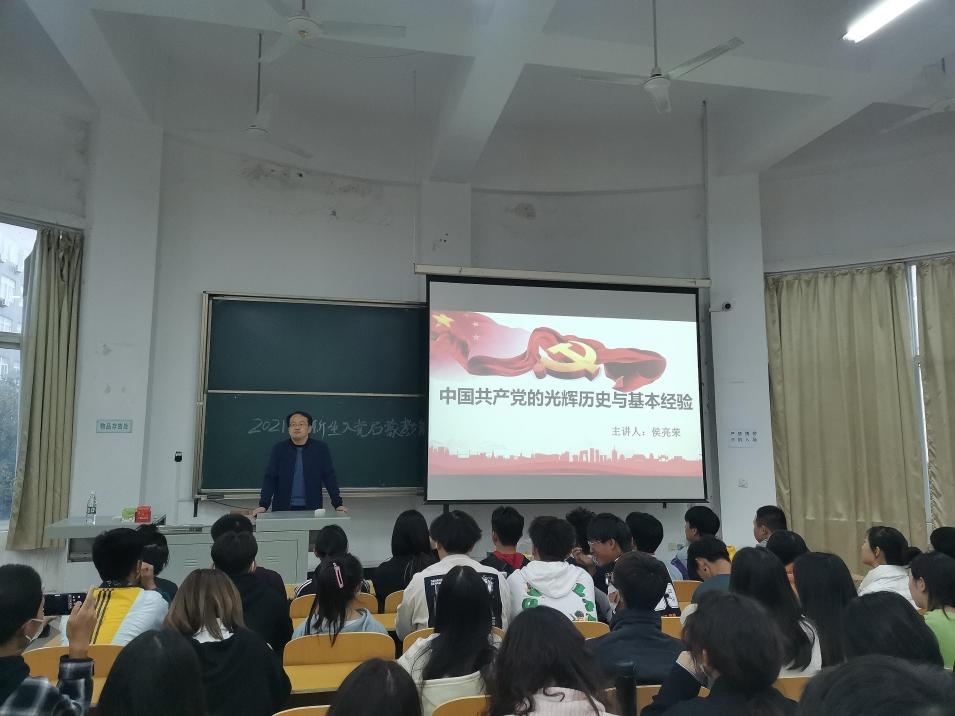 (图 寇微|文 饶心茹)为鼓励新生积极向党组织靠拢,引导新生端正入党动机。2021年10月18日,ylg060net永利娱高党总支部书记侯亮荣同志在3201教室以“中国共产党的光辉历史与基本经验”为主题,为同学们展开了一场入党启蒙教育。