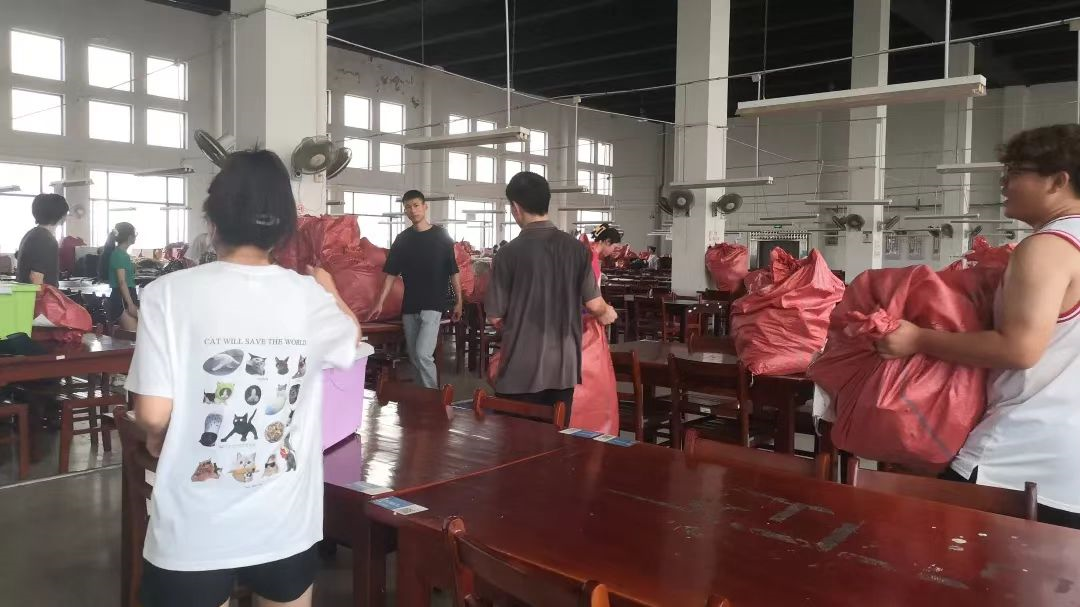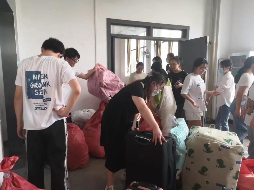 武汉的夏天格外炎热团学组织的干事仍坚守在搬寝物品转移点第一线帮助同学们接送物品师生们任劳任怨、戮力同心,一个个忙碌的身影穿梭在校园各个角落,成为校园里一道亮丽的风景,将校园的青春之火再次点亮。