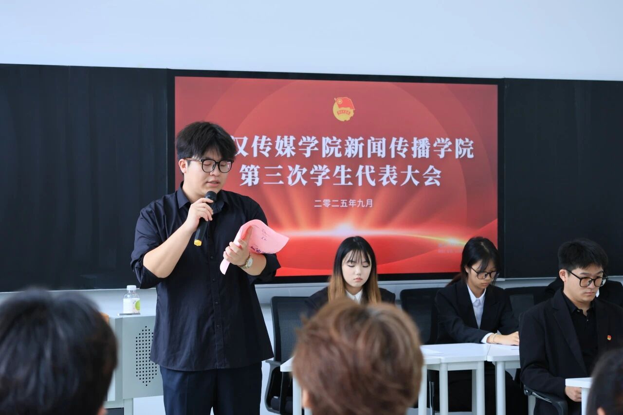 学院学生科副科长葛清源鼓励代表们充分利用本次学代会的平台,积极交流思想,努力将大会精神转化为个人成长的动力。在新闻传播这片广阔天地中,书写属于我们这一代人的辉煌篇章。