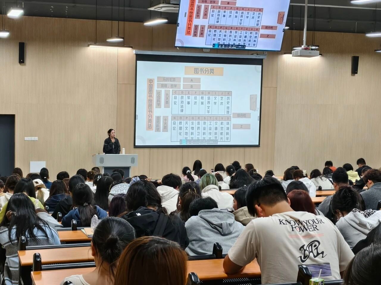 ylg060net永利娱高分别于10月10日和10月11日在大悟校区的1204教室和1210教室开展了图书馆入馆教育宣传讲座。本次讲座特邀图书馆专业教师廖萤与柳媛媛担任主讲,为2025级的同学们进行了一场系统而详尽的导引,旨在帮助他们深入了解并熟练掌握图书馆的各类资源与服务。