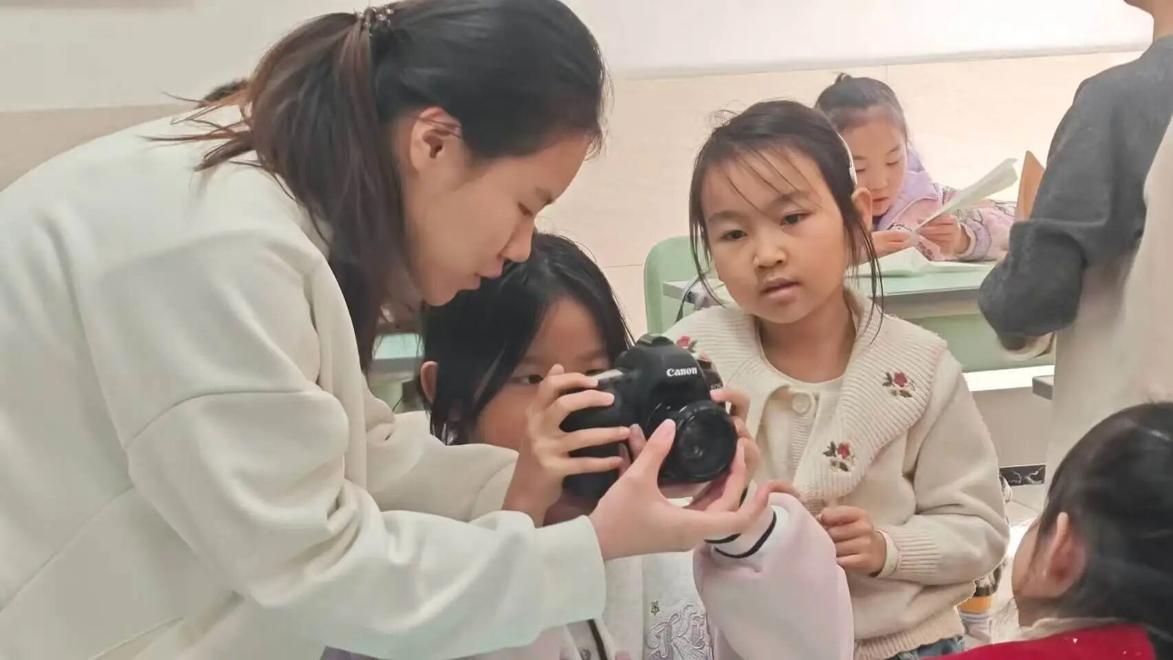 课堂上,孩子们从陌生到熟练,从模仿到创作,每一次快门声都承载着他们对美的探索。我不仅是知识的传递者,更是他们发现世界的陪伴者。这段经历让我明白,教育的意义在于点燃兴趣、守护好奇,而每一个孩子都是天生的摄影师,只需要一双发现美的眼睛和一份耐心的引导