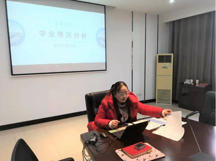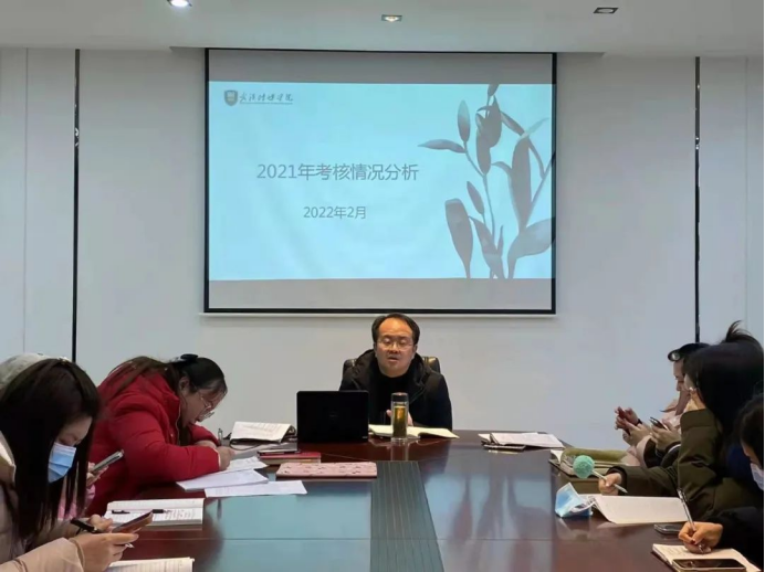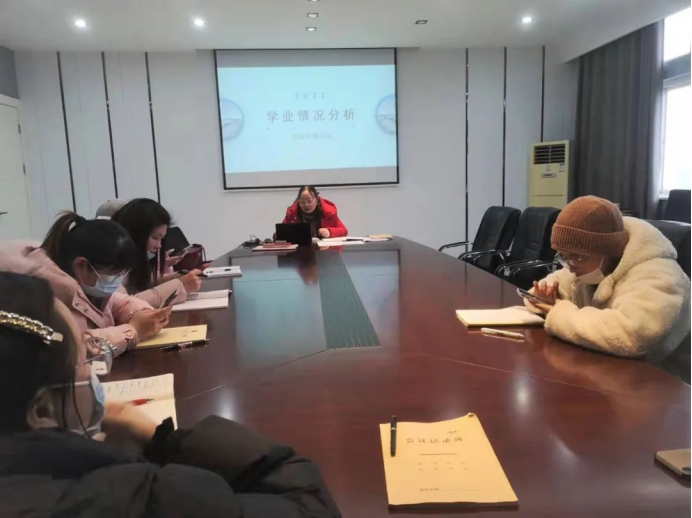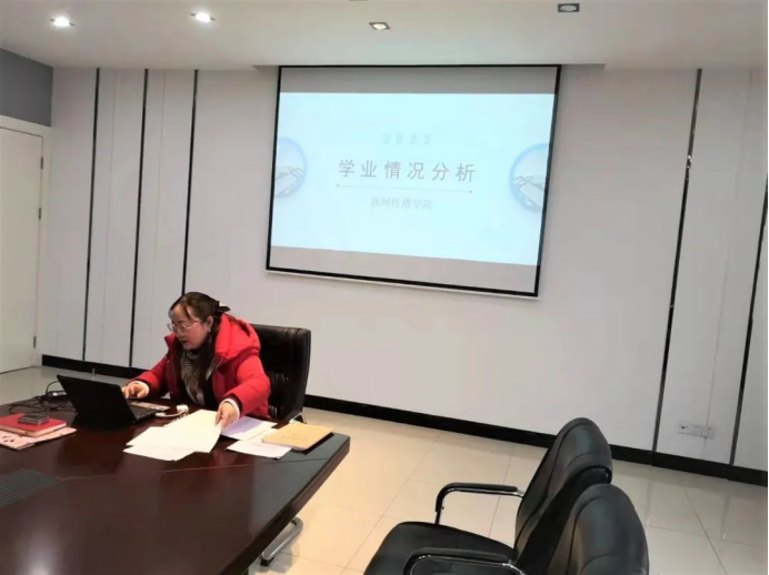 第二项议程,学风建设专题研讨,由学生科科长秦晶晶老师以《2021-2022-1学期学业分析报告》为依据,深入分析、全面对标查找了各年级学风建设的不足,重点对不及格率,不及格课程,缺考等数据进行分析。她通过分析本年级学风建设现状,提出如下举措: