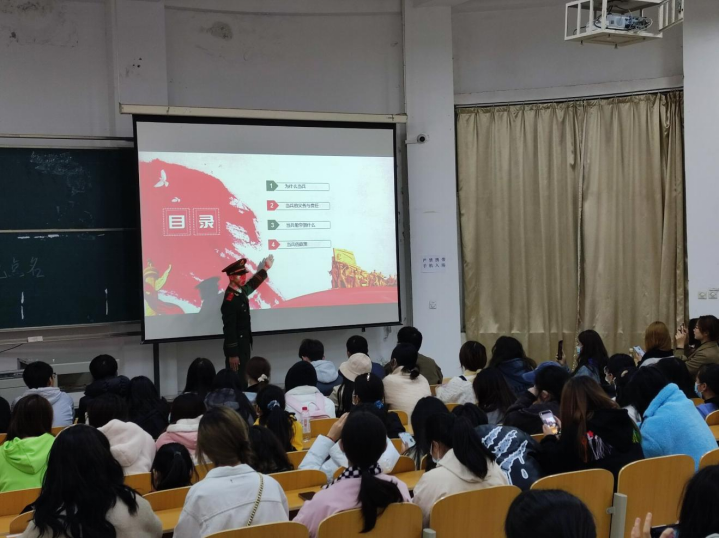 支恒同志讲述了他为什么当兵、当兵的义务与责任以及当兵能学到什么,同学们对“兵”字有了更深刻的理解,对兵人有了更多的敬佩和景仰。相信通过此次宣讲,同学们征兵的意愿会大大增加。