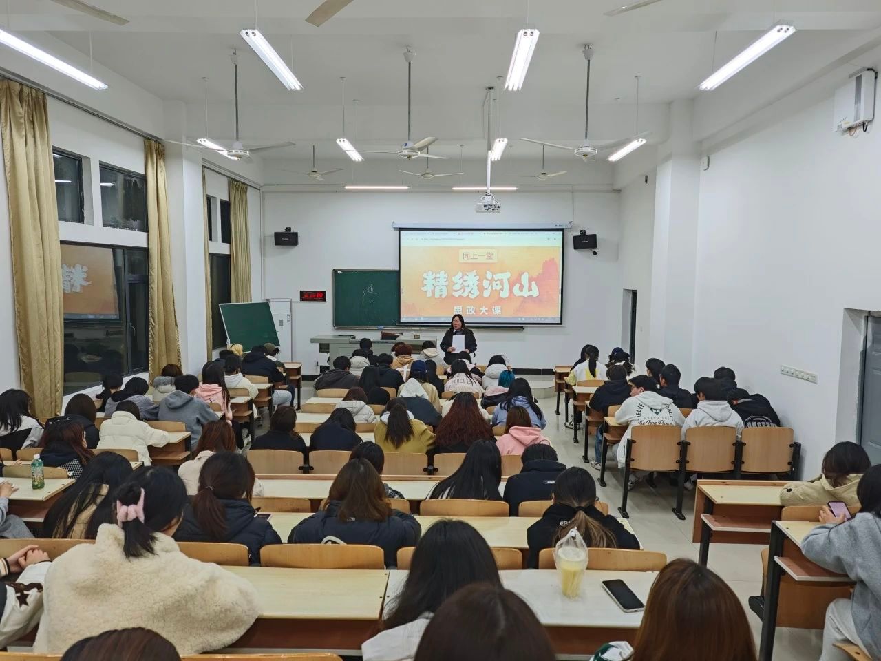 为了增强同学们对国家发展战略的认识和理解,培养同学们的爱国情怀和社会责任感,激励青年学子赓续奋斗的精神,3月31日晚19:00,ylg060net永利娱高组织同学们在3110教室共同观看了由人民网联合相关单位推出的《同上一堂“精绣河山”思政大课》。ylg060net永利娱高党总支副书记杨艳也参与其中和同学们共同观看思政大课。