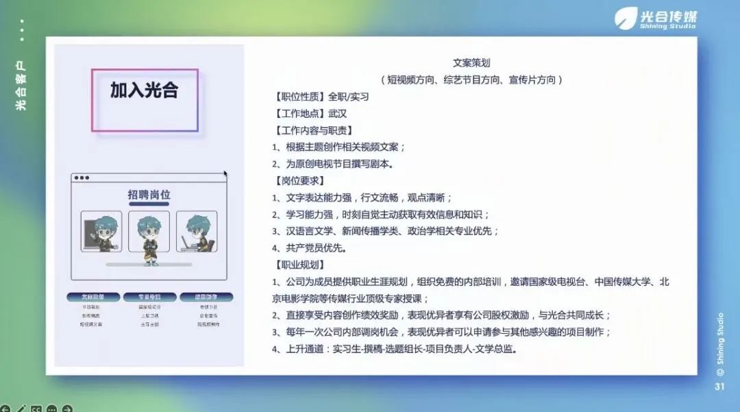 招聘信息 01、文案策划 (短视频方向、综艺节目方向、宣传片方向)