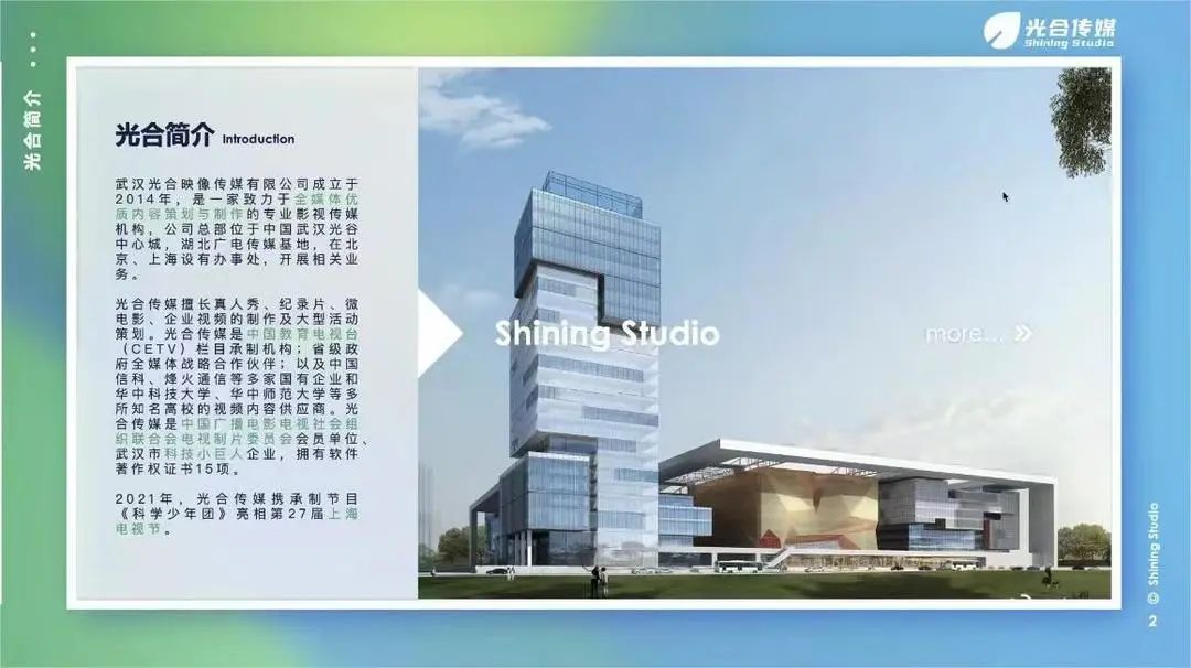 武汉光合映像传媒有限公司成立于2014年,是一家致力于全媒体优质内容策划与制作的专业影视传媒机构。光合传媒持续高效创作优质影视内容,擅长真人秀、纪录片、微电影、企业视频的制作及大型活动策划。