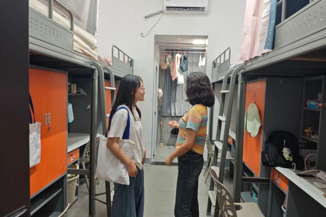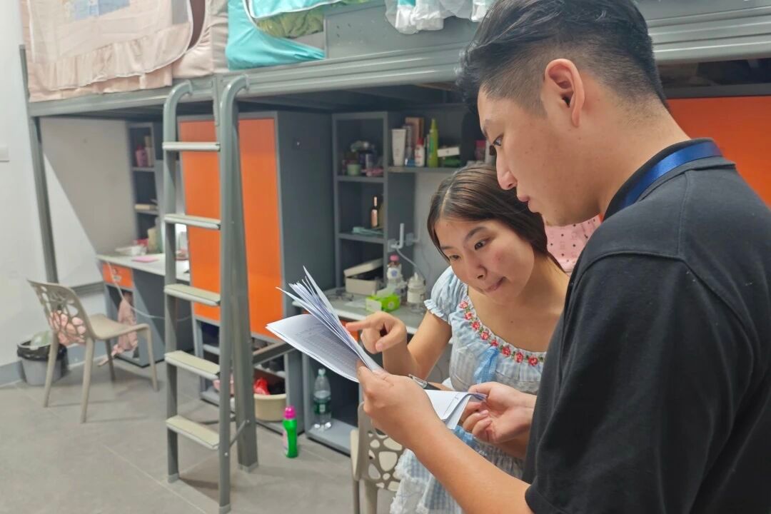 学院学生科副科长葛清源、辅导员方锦华和何宇轩走访新生宿舍。他们亲切询问新生们的生活适应状况,了解大家在生活中是否遇到困难,鼓励同学们在宿舍里互帮互助,营造温馨和谐的宿舍氛围,让宿舍成为温暖的“家”。老师们的关怀让新生们倍感温暖,也拉近了师生之间的距离。