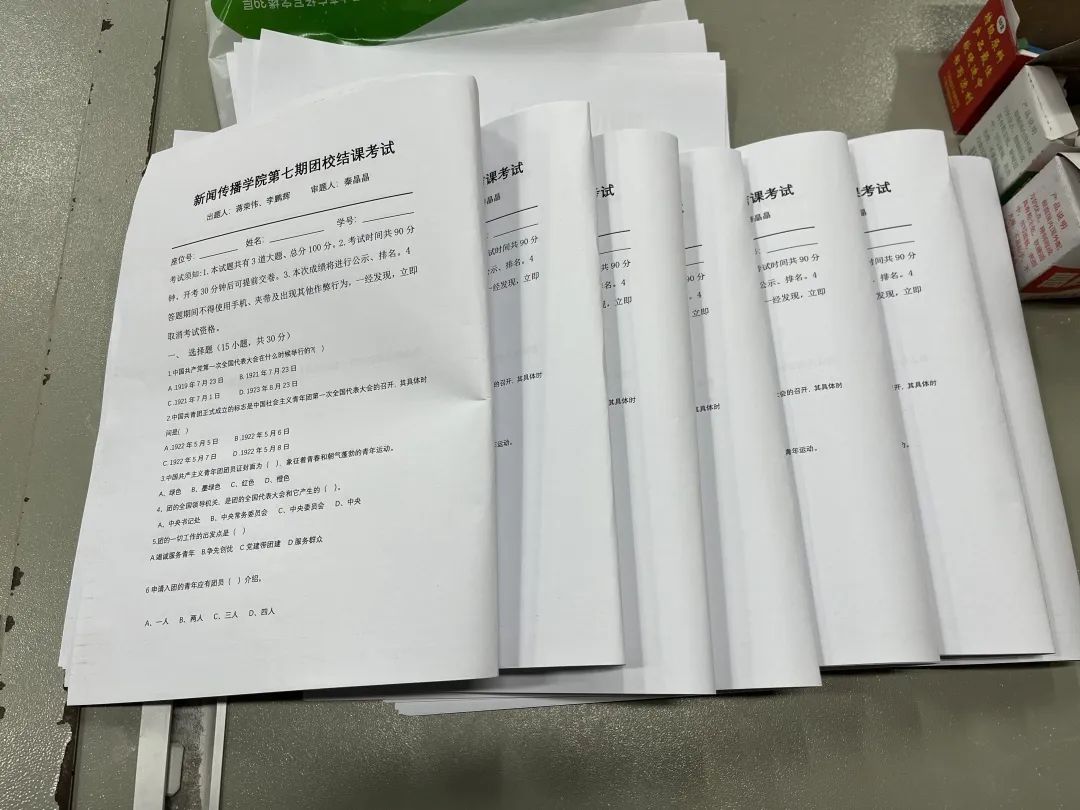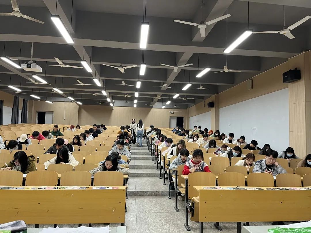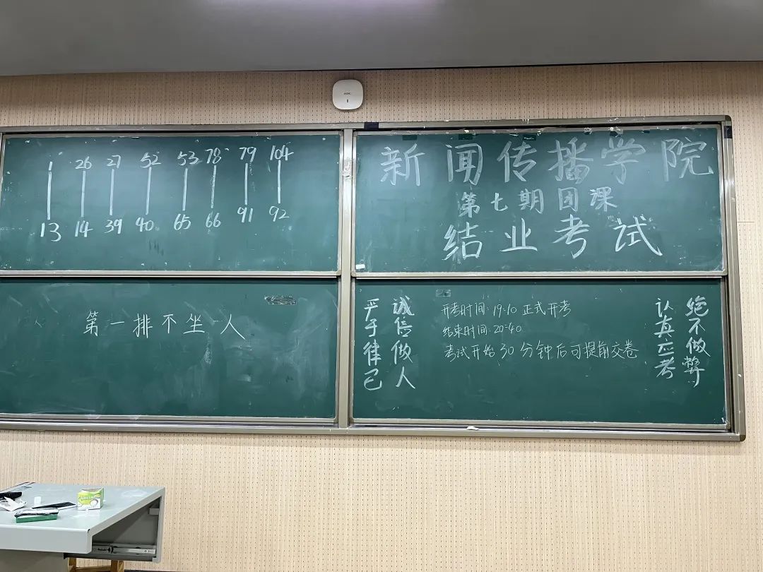 针对这次结课考试,许多同学提前来到考场并验实自己的证件后,按照考场黑板上表明的作为序号落座,其中有的同学手上还拿着自己准备的考试资料,马不停蹄地进行最后的考前复习。同学们首先了解了考场纪律和考试规则,然后由组织部部长李鹏辉分发考试试卷。同学们按照要求依次填写个人信息,接着开始认真作答。