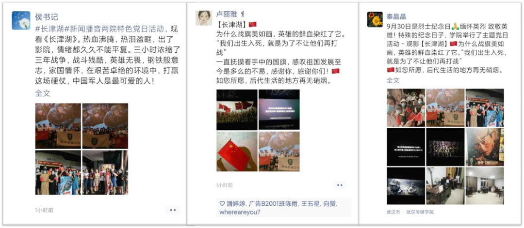我出了影院,情绪都久久不能平复。三小时浓缩了三年战争,战斗残酷,英雄无畏,钢铁般意志,家国情怀,在艰苦卓绝的环境中,打赢这场硬仗,中国军人是最可爱的人!,希望我们的师生党员能从红色精神中汲取养分,争做先锋堡垒,用实际行动践行“请党放心,强国有我”青春誓言,学院党总支书记侯亮荣说到。
