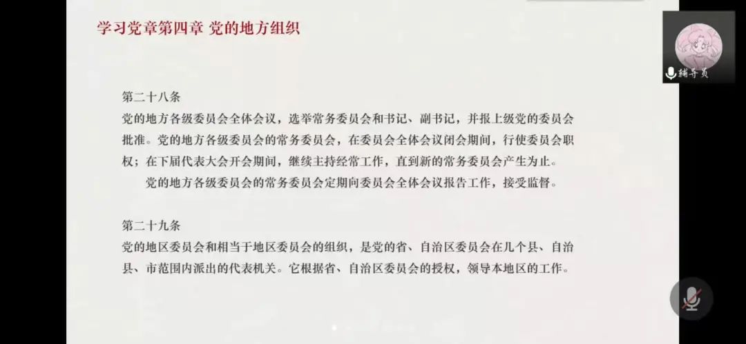 随后在张一蔓同志的带领下学习党章第四章内容。