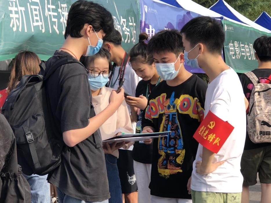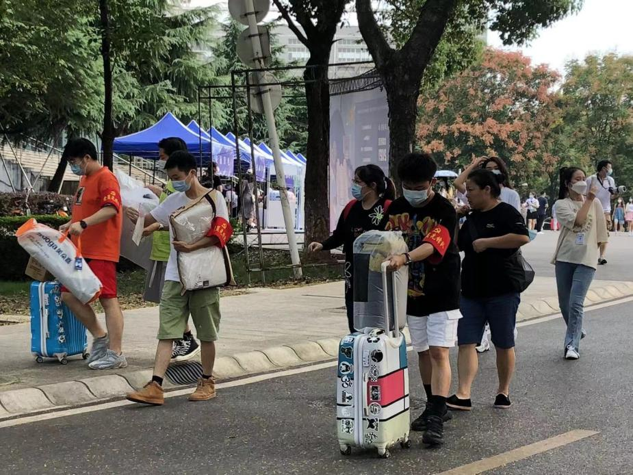 真情呵护,用心营造良好迎新氛围。迎新筹备期间,ylg060net永利娱高学生党员志愿者们将《学生手册》学习前置,集中进行了线下培训会,以期高效率高质量地完成迎新工作。同时,做好了新生宿舍检修和卫生清扫工作,协调宿舍安排和宿舍用品发放工作。设立了新生事务咨询服务点,就新生报到、贫困生绿色通道、参军入伍等事宜做了提前筹备;此外,校园内还设置有专门的校内摆渡车,帮助打通新生从校内报到点到宿舍楼的“最后一公里”。