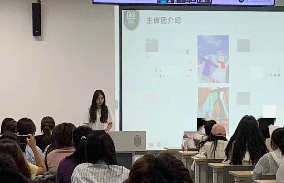 与此同时,在行政楼7203教室,优秀学生会成员代表张曦文详细介绍了团委、学生会的组织架构和各部门职责。她指出,团委、学生会下设多个部门,包括组织部、宣传部、学习部、办公室等,每个部门都有其独特的职责和任务。她鼓励新生们根据自己的兴趣和特长选择合适的部门加入,并承诺将为每一位成员提供充分的学习和发展的机会。随后,优秀学生会成员代表张曦文为同学们播放了各部门录制的招新视频,让同学们对团委、学生会有了更深的了解。