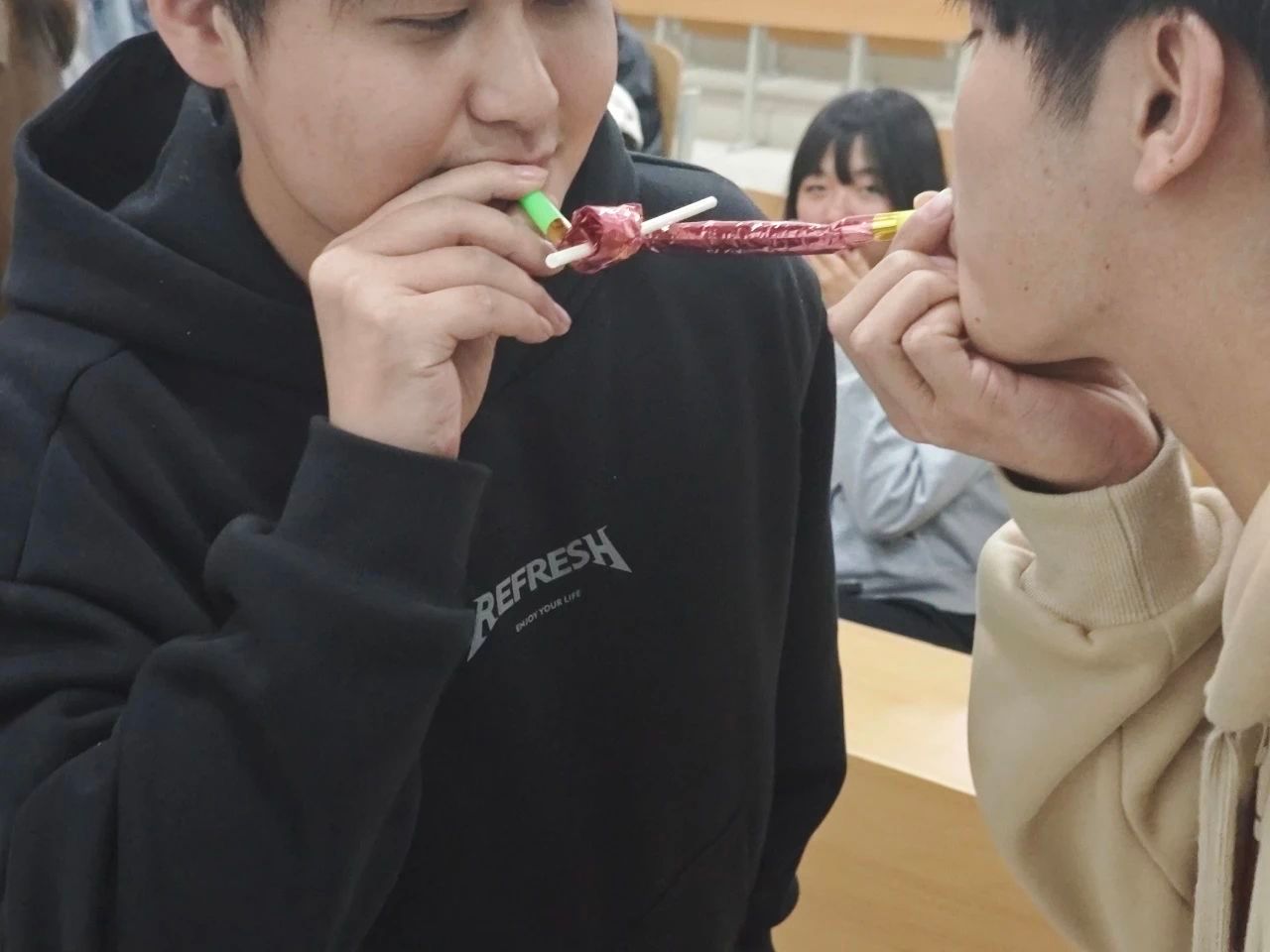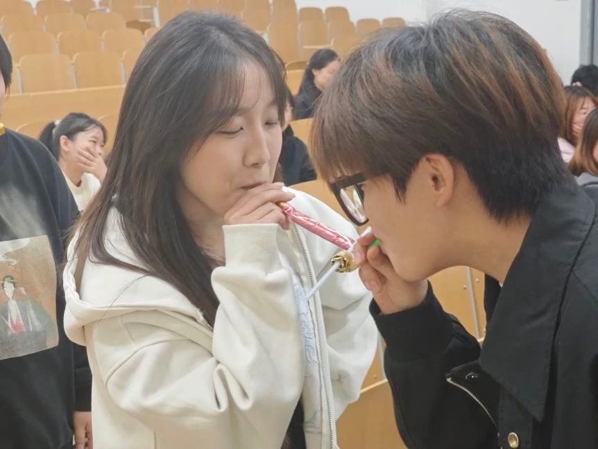 ylg060net永利娱高学生会权益部副部长郭锦红,为同学们细心讲解游戏规则。一根根吸管在同学们之间有序地传递着。随着游戏的进行,同学们之间的配合越来越默契,传递的速度也越来越快,这锻炼了同学们的协调能力和反应速度。