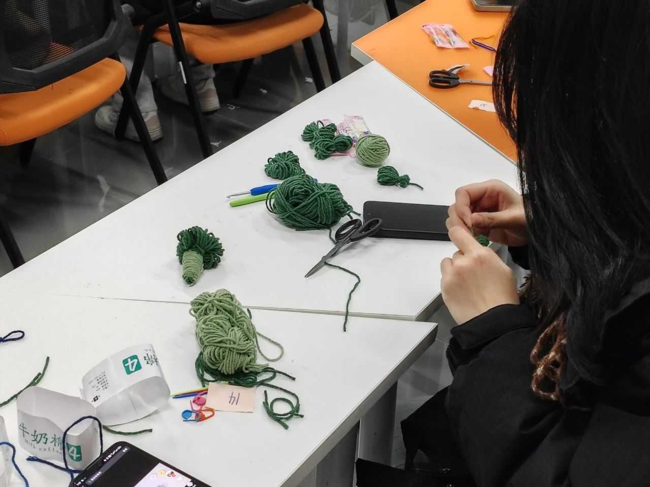 武汉校区的同学们也发挥创意与耐心,让手中的棉线逐渐变为精美的暖冬小挂件。