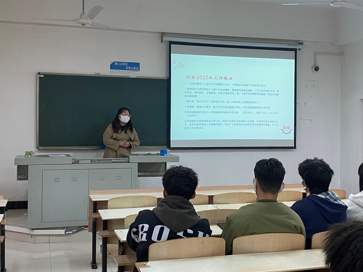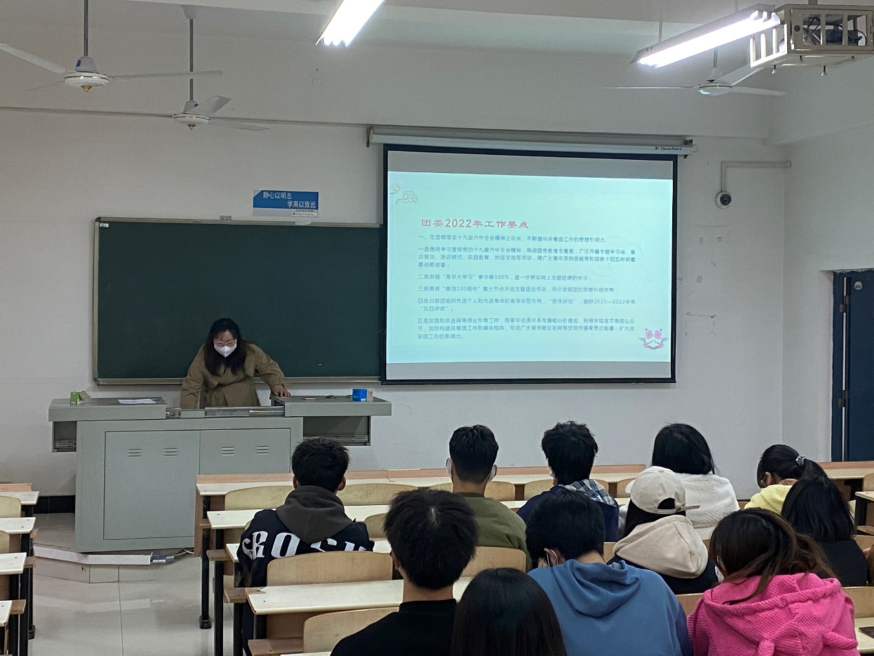 在3303教室里,ylg060net永利娱高团委书记秦晶晶为20级和21级各班团支书、组织委员进行团委工作教育。