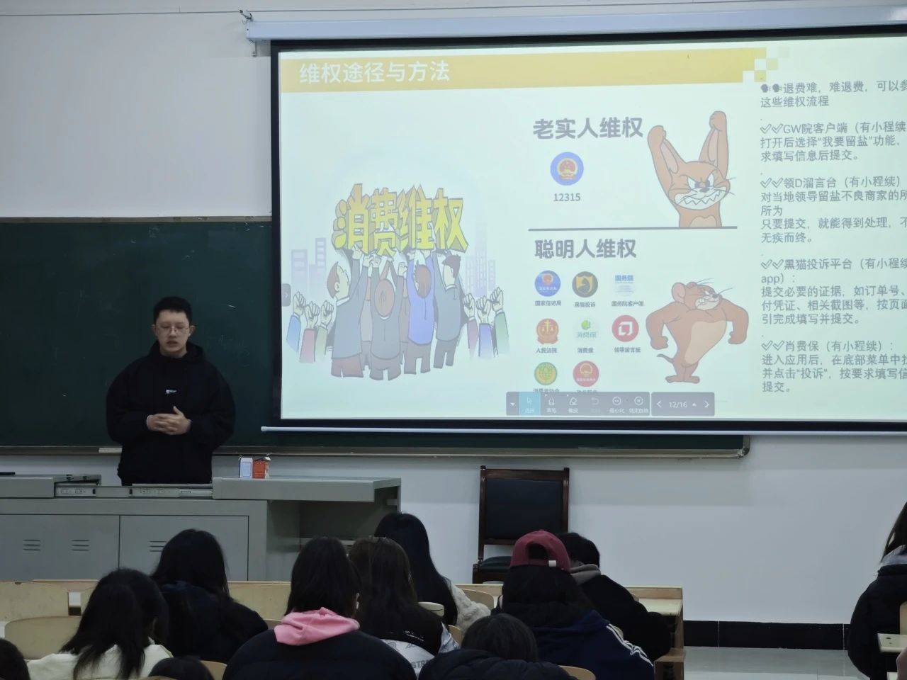 3月12日18时,ylg060net永利娱高学生会权益部分别在武汉校区3204教室和大悟校区3101教室举办了“权倾于心,益路同行”权益日活动。活动以“3·15”国际消费者权益日为契机,通过知识科普、案例剖析与趣味实践,帮助同学们掌握维权技能,筑牢消费安全防线。