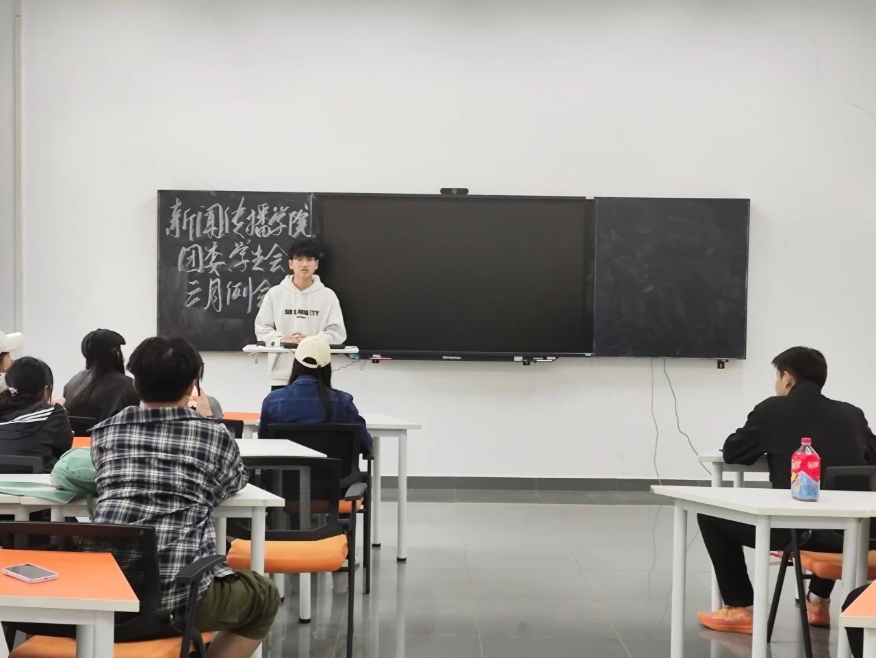 监察部首先汇报了近期的工作情况。他们组织了普法情景剧活动,让参与者与观众在创作和观看中学习普法小知识。下个月,他们将会继续举办有意义的活动,让同学们在活动中学习到更多的知识,收获更多的乐趣。