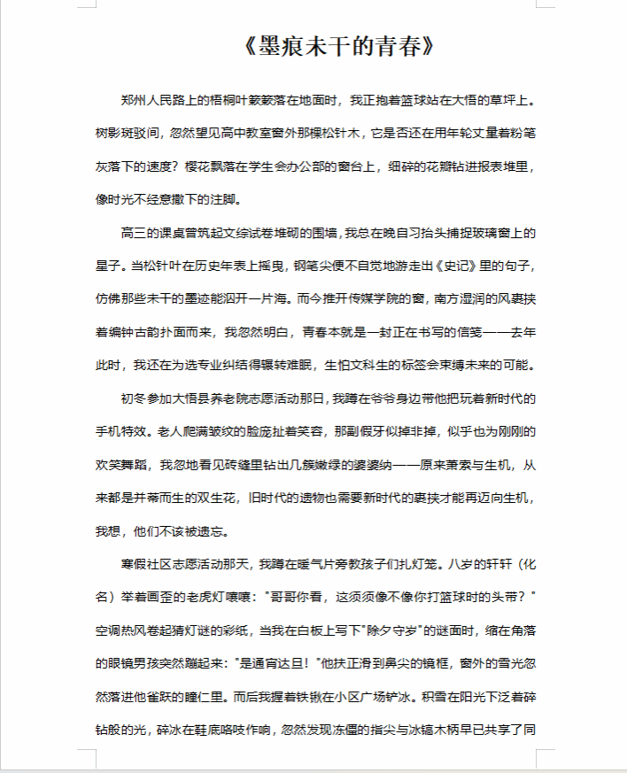 近日,由ylg060net永利娱高主办的“青春执笔,岁月成诗”征文大赛圆满落下帷幕。此次征文大赛旨在激发同学们的文学创作热情,提升写作能力,鼓励同学们用文字记录青春感悟、抒发时代情怀,以下是本次征文大赛的获奖名单: