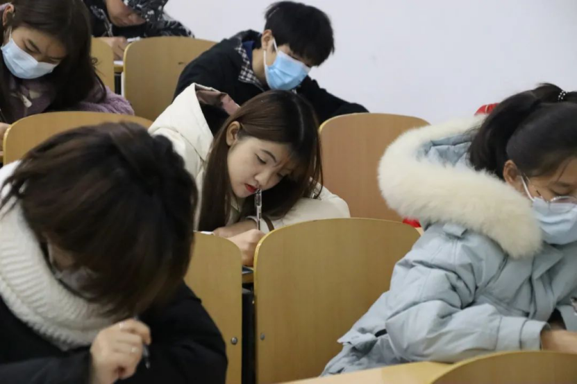 在考场上,有的同学冥思苦想,有的同学奋笔疾书,从他们的认真严肃的表情便可以看出他们对此次结课考试十分重视。在此预祝所有同学们能顺利结课,在团、党的领导下一直发光发热!