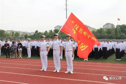 随后,教官入场,授予军旗