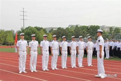 “1.2 .1 、 1.2....”,教官们飒爽英姿,喊着口号进入操场内,授予军训旗帜。