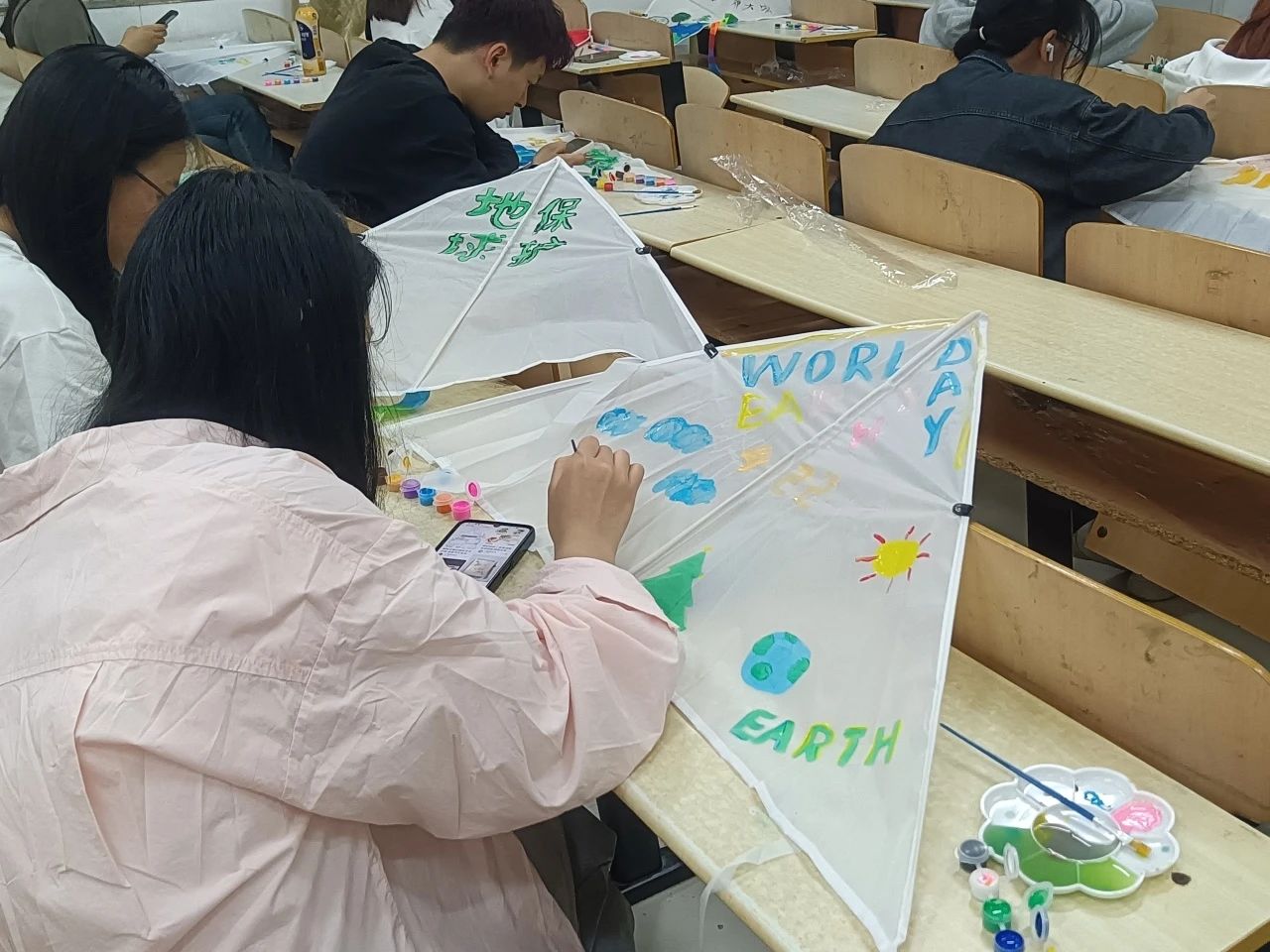 紧接着,纸鸢绘画环节拉开帷幕。同学们纷纷拿起画笔,绘出心中理想的地球模样。一幅幅色彩斑斓、充满想象力的画作在画布上逐渐呈现,既展现了同学们的艺术创作能力,也传递了他们对美好家园的向往和期待。