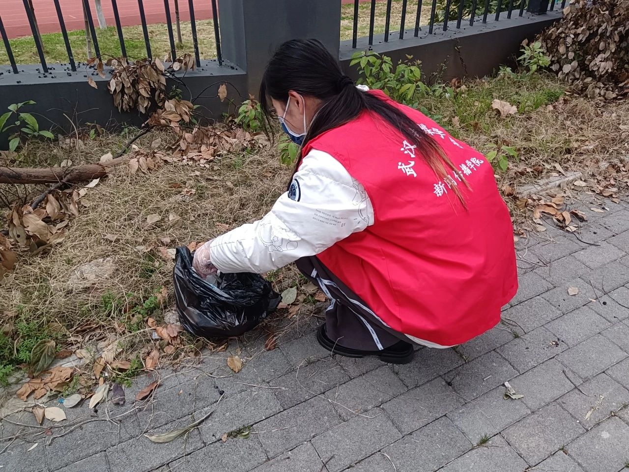 活动开始前,工作人员为参与的学生分发了红背心、一次性手套和垃圾袋。在工作人员的组织下,同学们分成两队清理了学校周围的垃圾。